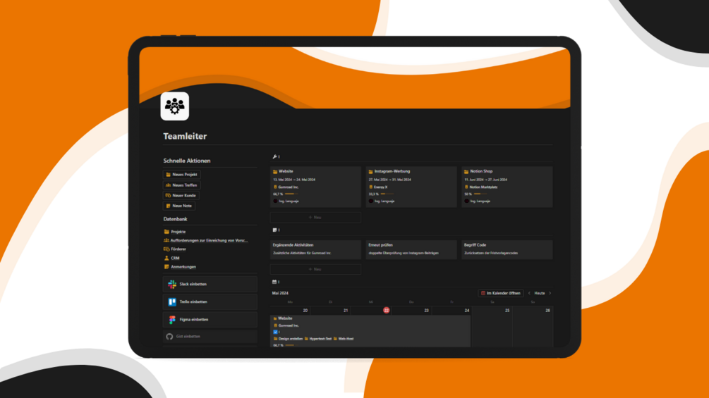 Zentrale Erfassung relevanter Informationen: Dokumentieren und organisieren Sie alle wichtigen Notizen im Zusammenhang mit Ihren Projekten und Teams. Von kreativen Ideen bis hin zu wichtigen Vereinbarungen - mit unserer Vorlage haben Sie alle wichtigen Informationen immer griffbereit und können so fundierte und strategische Entscheidungen treffen.